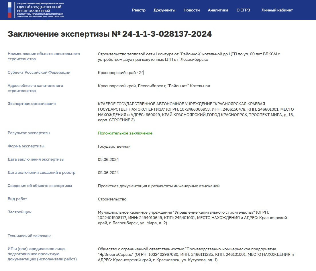 Строительство тепловой сети I контура от "Районной" котельной до ЦТП по ул. 60 лет ВЛКСМ с устройством двух промежуточных ЦТП в г. Лесосибирске